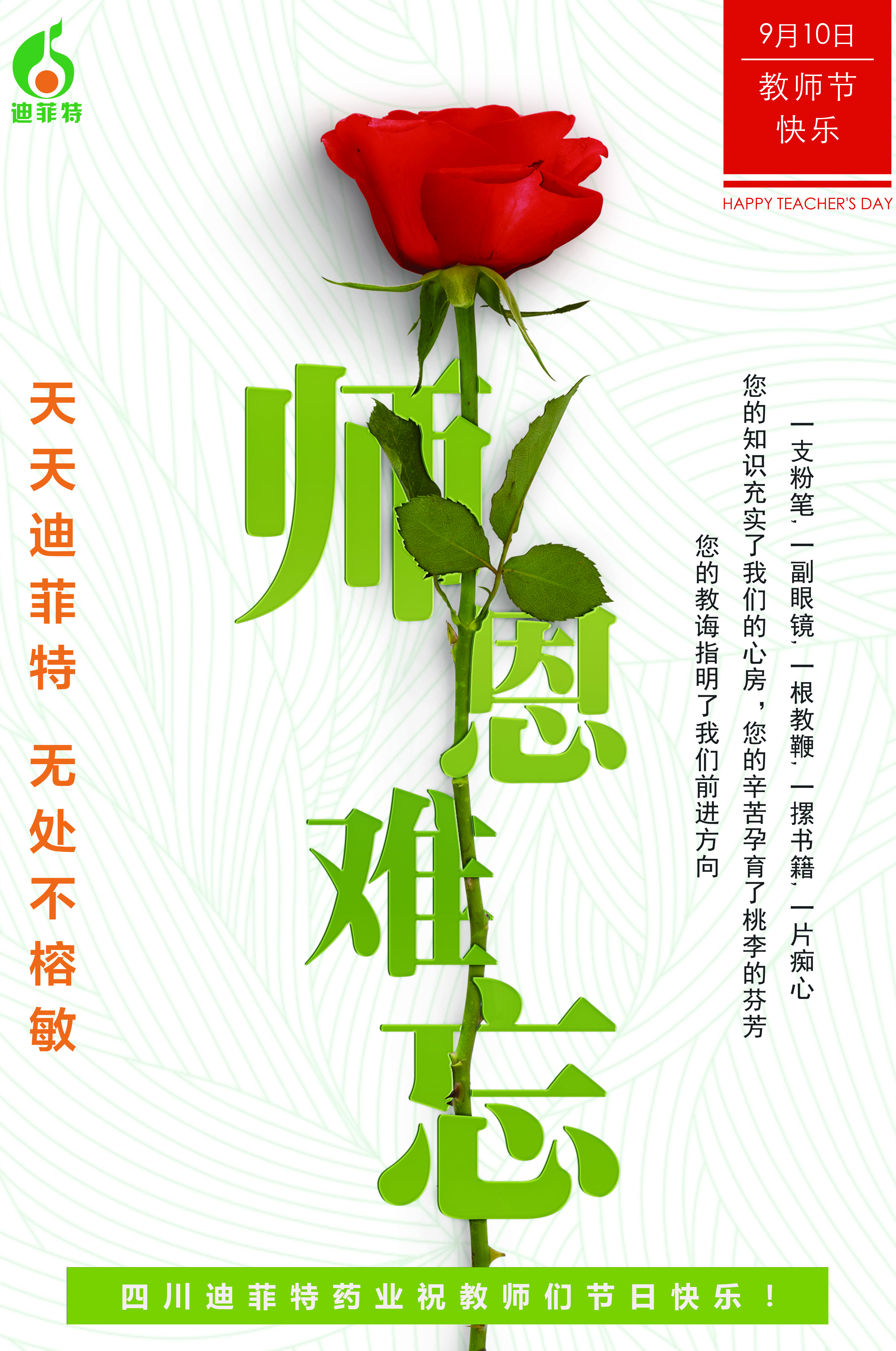 - 2018-09-10·四川迪菲特药业祝教师们节日快乐!